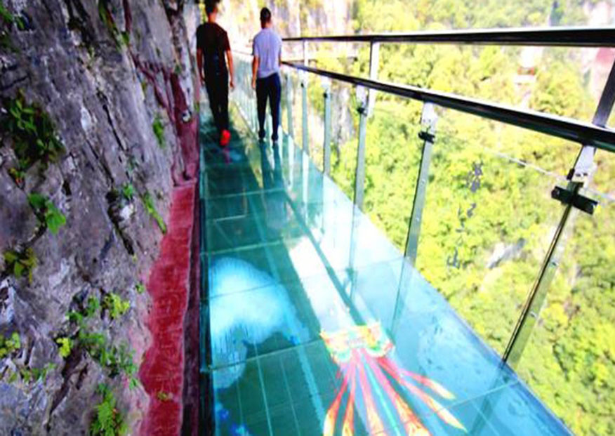 把箱體之間放在玻璃棧道鋼化玻璃下面的鋼結(jié)構(gòu)上,固定即可。